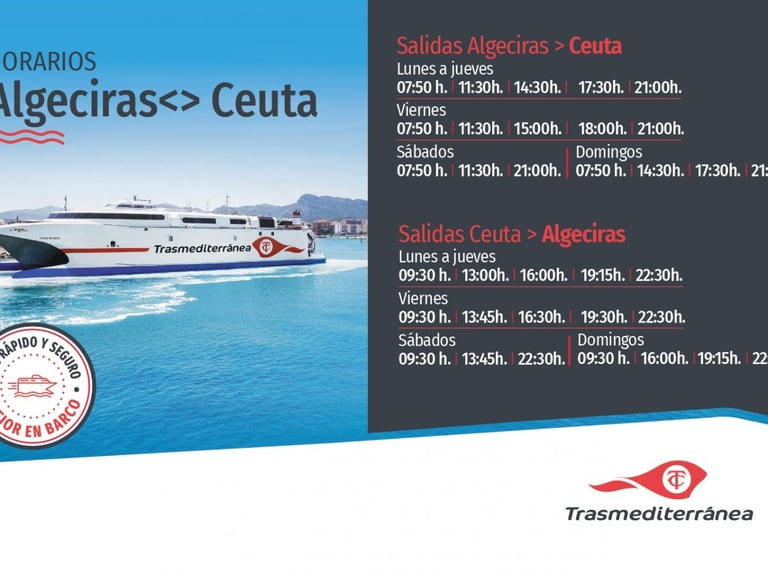 Aquí podrás ver los horarios de los barcos que conectan Ceuta y Algeciras. Esta información es muy útil para aquellos que deseen viajar entre estas dos ciudades, ya sea por motivos de trabajo o simplemente para visitar y conocer ambos lugares. Los horarios de los barcos son variados, ofreciendo opciones tanto en la mañana como en la tarde. Podrás elegir el horario que mejor se adapte a tus necesidades y planificar tu viaje de manera eficiente. Es importante tener en cuenta estos horarios para asegurarte de llegar a tiempo al puerto y no perder el barco. Consultar esta información te permitirá organizar tu viaje de forma más cómoda y evitar contratiempos innecesarios.